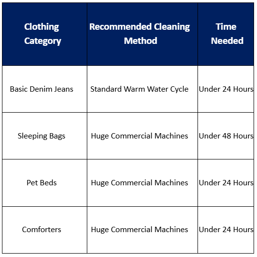Different garments need specific treatments. This helpful table breaks down the absolute best ways to clean normal household items.